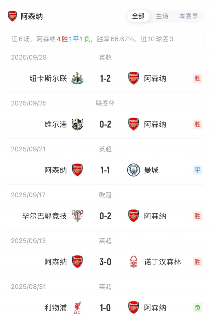 10月2日讯 欧冠联赛阶段第2轮,阿森纳对阵奥林匹亚科斯,赛前首发公布。约克雷斯、马丁内利先发,萨卡、赖斯替补。